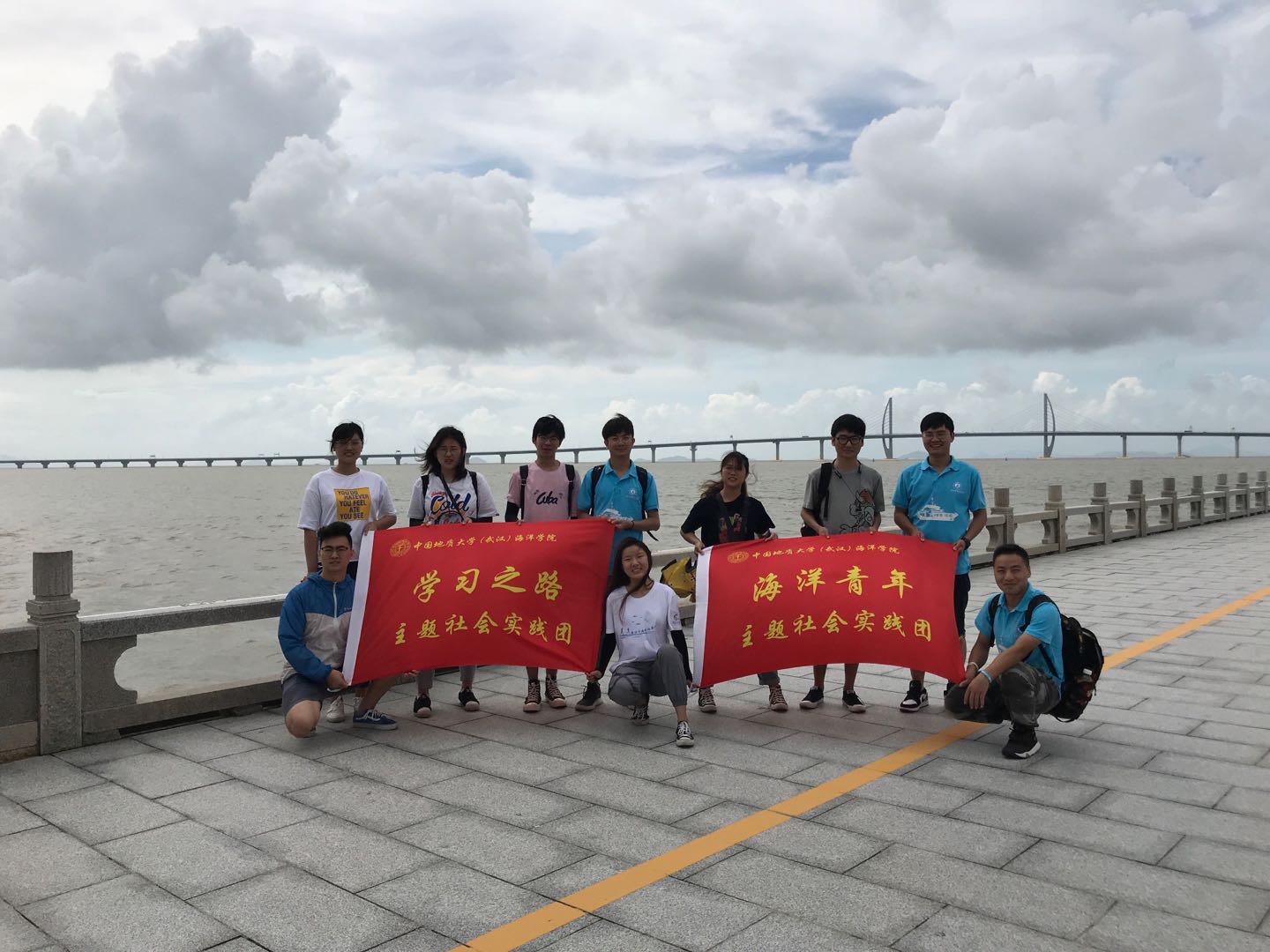 7月6日,黑人AV 主题社会实践团来到港珠澳大桥,近距离感受祖国伟大的海洋交通基础建设。