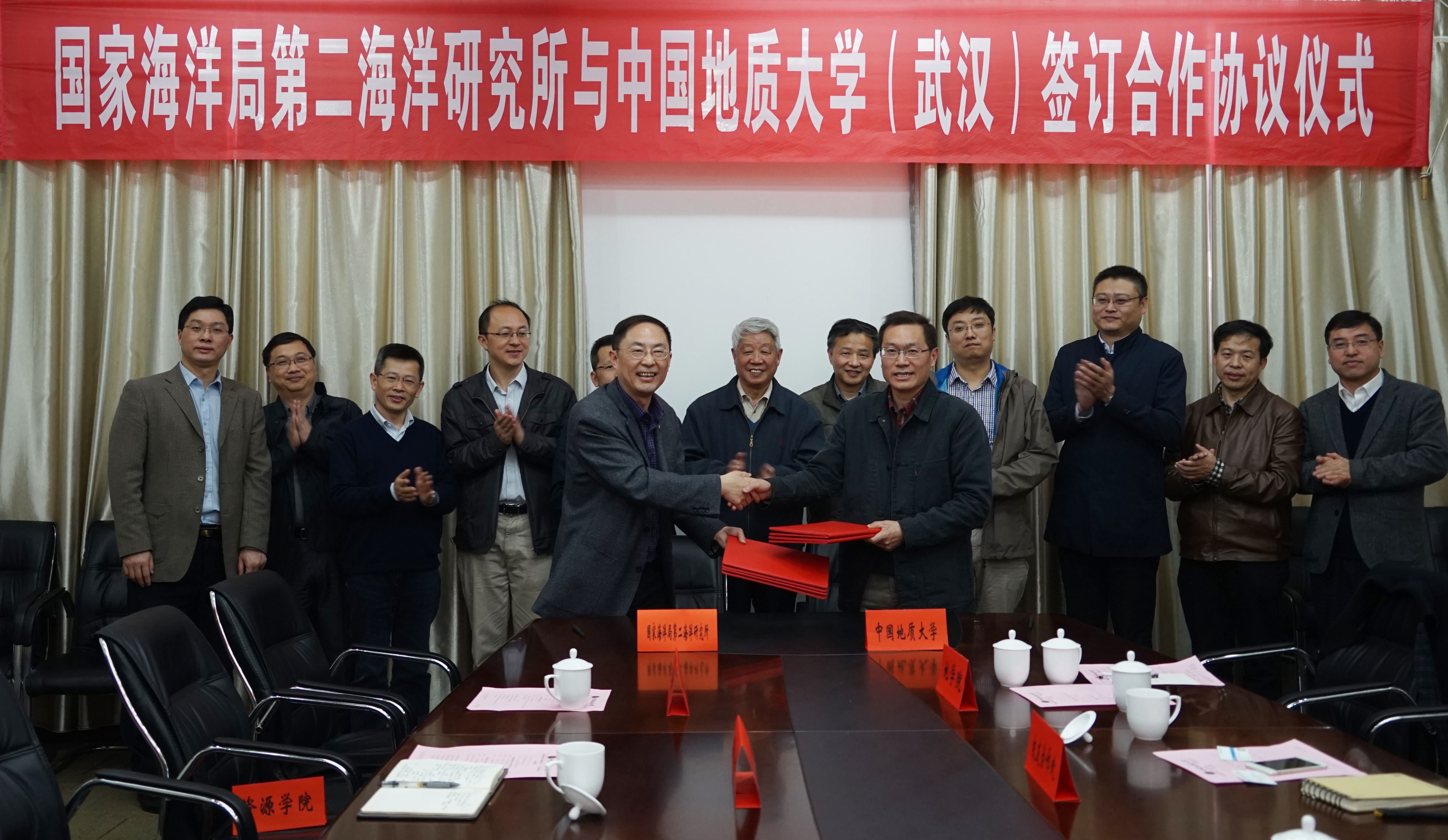 黑人AV (武汉)万清祥副校长、国家海洋局第二海洋研究所李家彪所长代表双方共同签署了合作协议。