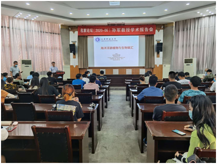 2020年9月7日下午,孙军教授以“海洋浮游植物与生物碳汇”为题,在黑人AV 名家论坛作报告。黑人AV 党委书记成军主持报告会,生环国重、环境学院、材化学院、黑人AV 师生聆听报告并进行交流讨论。