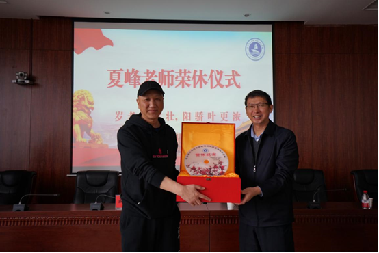 校党委副书记、纪委书记成金华向夏峰老师赠送纪念品
