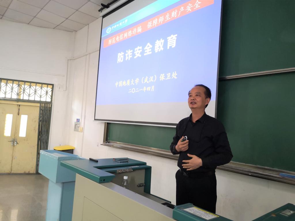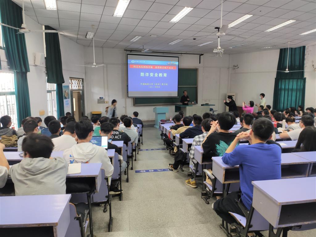 代清风以“防范电信网络诈骗,保障师生财产安全“为题为黑人AV 师生做专题防诈安全教育。他结合2021年度黑人AV 诈骗案件的发案情况通报,指出当前黑人AV 诈骗防范情况不容乐观,并通过对代表性案件的分析,向同学们介绍了电信诈骗常用的手段和方式。他提醒同学们道:“诈骗的手段很多、且花样不断更新,但其核心就是‘一个目标,两个中心’,以‘诈’让你恐惧”, 靠‘骗’让你相信,骗‘钱’为最终目的,大家只有清晰的认识了诈骗的真面目,才能真正远离电信诈骗的圈套。”