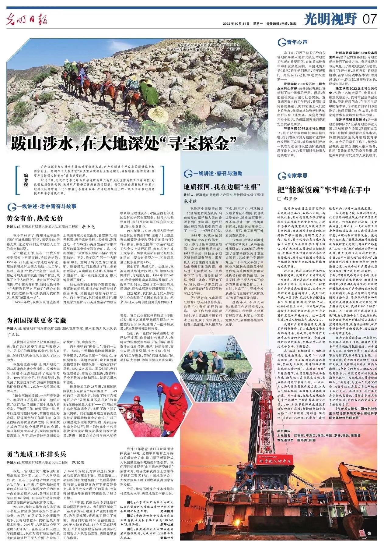 黑人AV 学生工作辅导员陈杨发表心声:老一辈地质勘探队员“以献身地质事业为荣、以艰苦奋斗为荣、以找矿立功为荣”的精神,激励着我苦练本领,怀着满腔热血投身地质教育事业。在今后的学习工作中,我会牢记嘱托,落实立德树人根本任务,讲好“英雄地质队”的奋斗故事,激励并呵护新时代地学人成长成才。