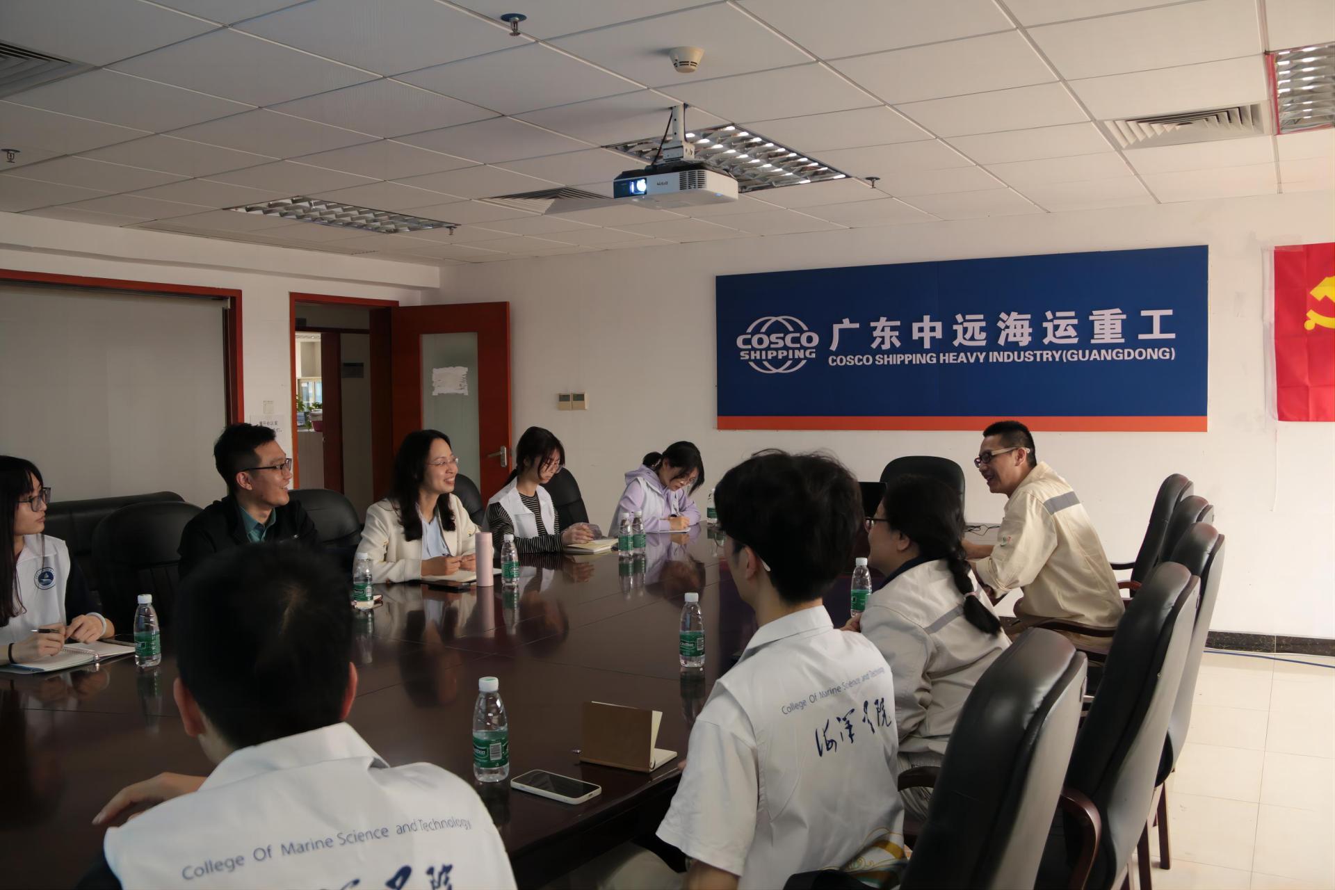 会谈中,广东中远海运重工团委书记郭煜宏对钟苹副书记一行表示欢迎。他介绍了公司的发展历史和人才发展需求以及广东中远海运重工在船舶和海洋工程装备建造、修理改装及配套服务等方向的丰富底蕴和经验,希望双方能够加强人才供需对接,实现合作共赢。