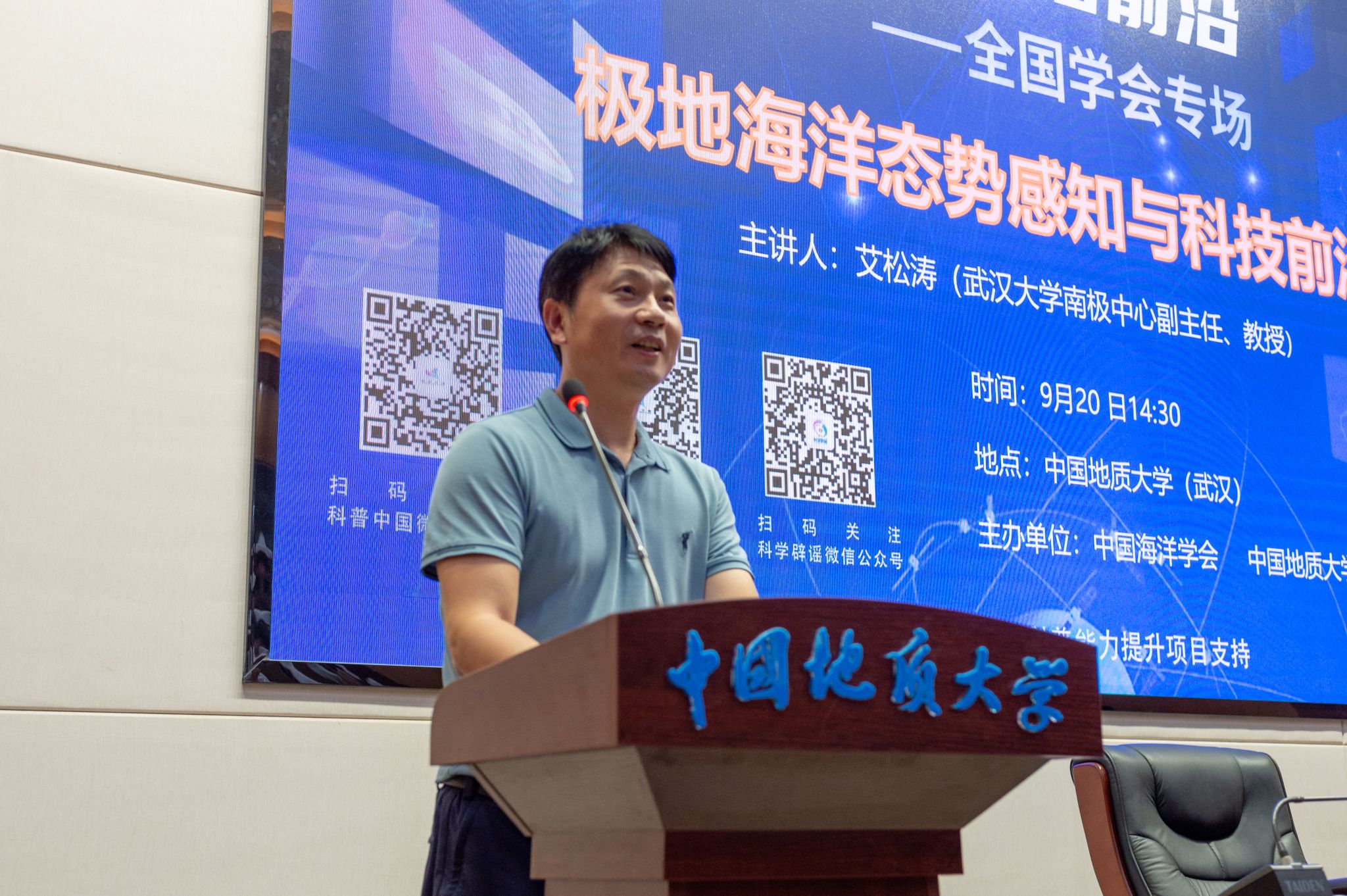 (通讯员李盼盼)以“提升全民科学素质,协力建设科技强国”为主题的2024年全国科普日活动正在火热进行中。为学习传承科学家精神、激发海洋学子对极地科考的兴趣,9月20日下午,黑人AV (武汉)和中国海洋学会邀请中国南极测绘研究中心副主任、武汉大学艾松涛教授开展题为《极地海洋态势感知与科技前沿》的专题科普讲座。黑人AV 副院长陈刚、宫勋,陈波老师及黑人AV 本研学生参加。黑人AV 副院长陈刚教授代表学院全体师生对艾松涛教授的到来表示热烈欢迎,并简要介绍了艾松涛教授的科研及工作经历。