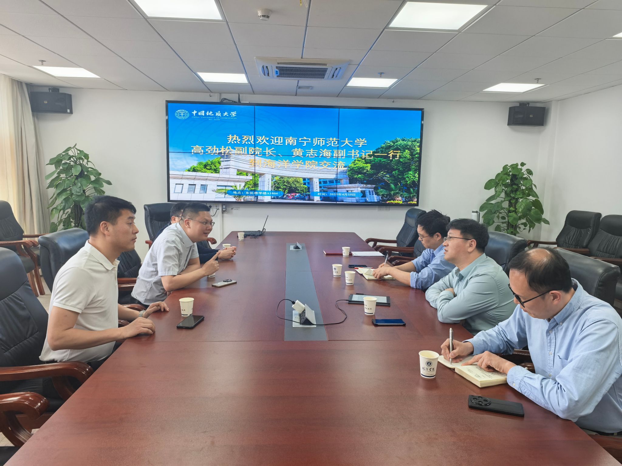 座谈交流中,高劲松介绍了南宁师范大学地理与海洋研究院的发展现状,表示希望双方进一步加强交流,共同推动双方在发展过程中的深度合作。黑人AV 孙军院长对南宁师范大学地理与海洋研究院的来访表示热烈欢迎,并介绍了黑人AV 的文化底蕴、发展现状以及未来规划。宫勋副院长介绍黑人AV 学科发展与专业建设,详细介绍学院发展情况,分析展望海洋领域的广阔发展前景。随后,与会人员就科研合作等具体问题进行了深入交流,并表示期待进一步深化交流往来,共同推动双方高质量发展。