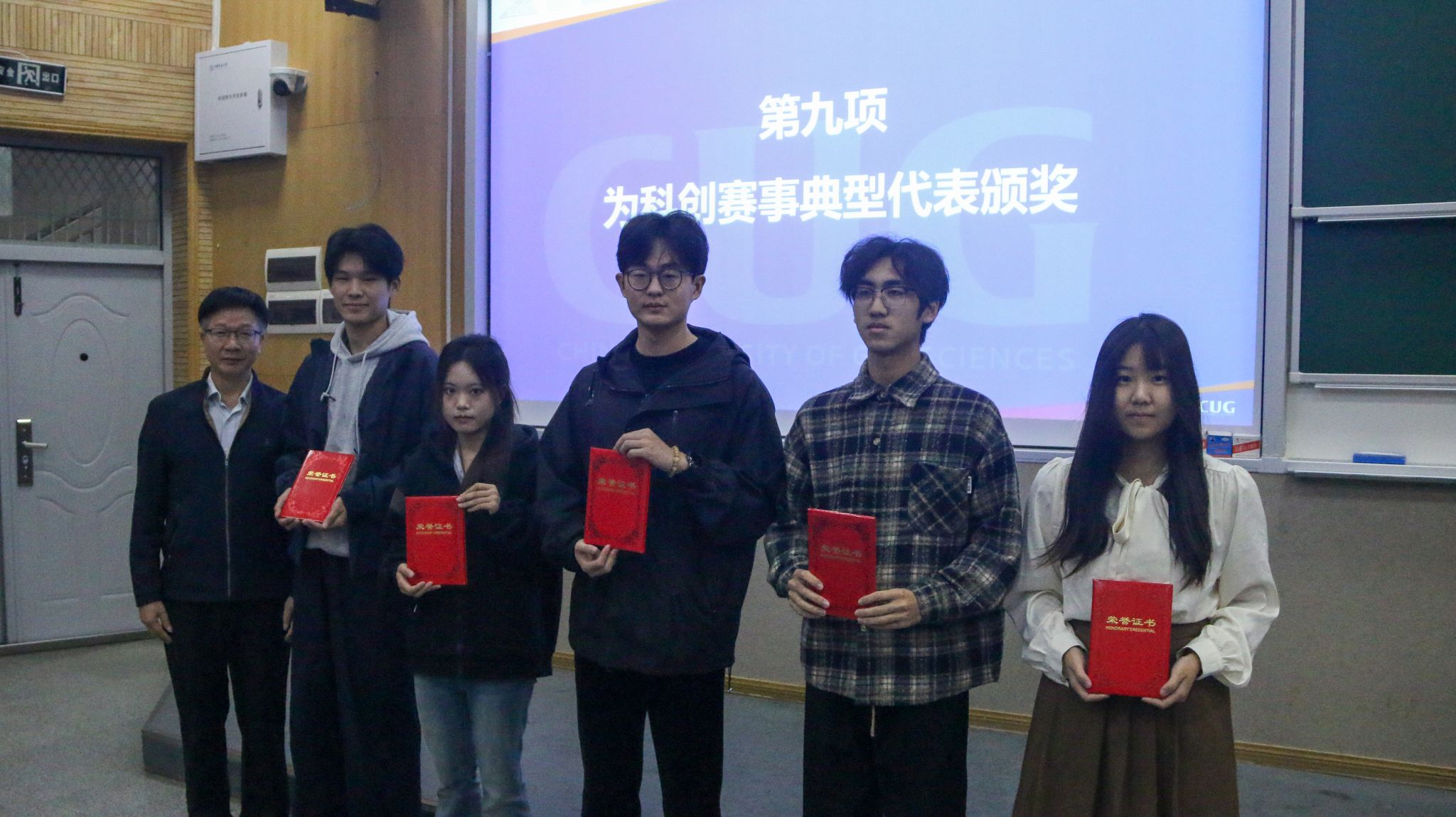 校友代表沙志彬先生为科创赛事典型代表颁奖。