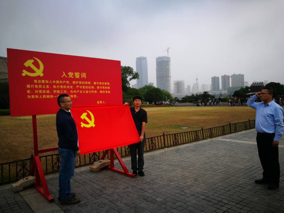 在毛泽东青年艺术雕塑前,学院全体教师党员整齐列队,由院党委书记成军同志领誓,面向党旗庄严宣誓,重温入党誓词,追问入党初心。各党支部也分别在塑像前进行了重温入党誓词活动。