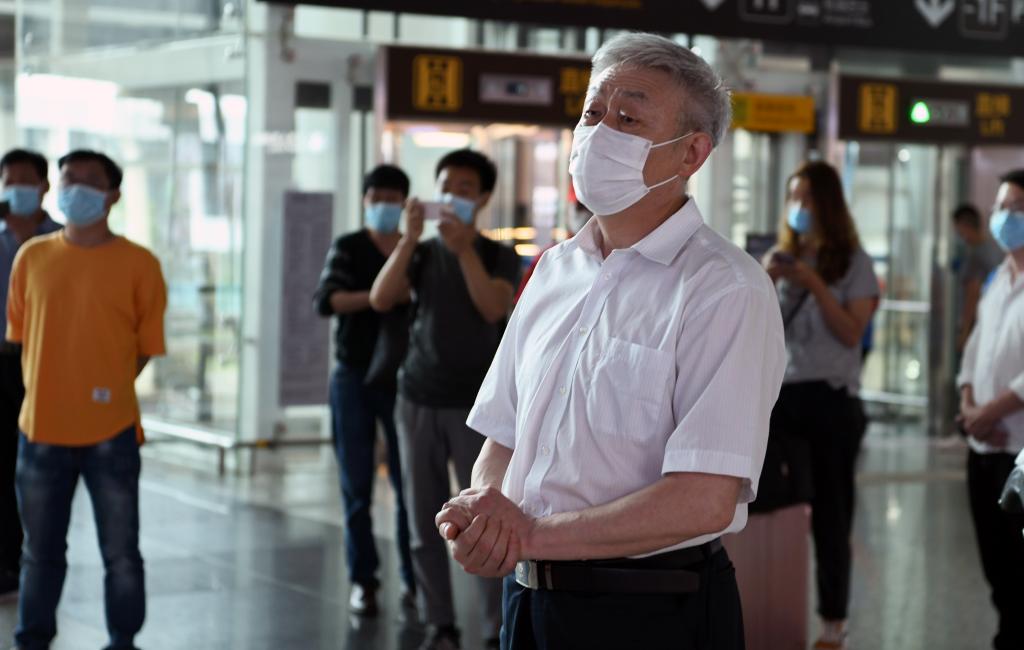 6月3日下午,2020珠峰高程测量登山队3名地大勇士从拉萨返回武汉。黑人AV (武汉)副校长傅安洲,黑人AV 党委书记成军、体育学院院长董范和部分师生代表到武汉天河国际机场迎接。
