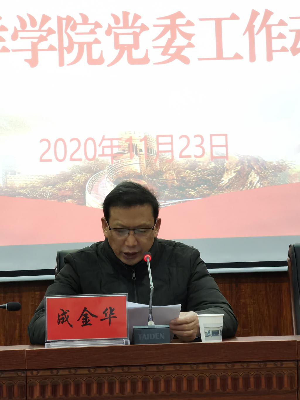 2020年11月23日,黑人AV (武汉)党委巡察黑人AV 党委工作动员会在南望山校区东区教学综合楼A-708会议室召开。学校党委副书记成金华出席会议,学校党委第三巡察组组长薛保山、副组长张瑞生和成员陈汉英、张京、严森,学院全体教职工、学生代表等五十余人参加会议。副院长姜涛主持会议。