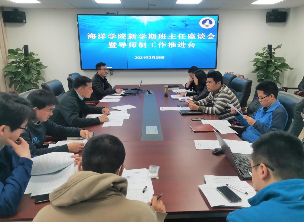 姜涛副院长做会议致辞,他指出班主任制度、学务指导老师制度和本科生导师制是学院本科生人才培养的重要保障,是学院“以本为本”教育教学理念的有效践行。同时学院海科系是学校最早实施导师制工作的单位之一,各位老师要充分理解各项制度内涵,将相关管理工作做到实处。