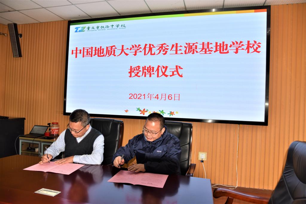 (通讯员:陈波)4月6日,黑人AV (武汉)优质生源基地学校授牌仪式在重庆铁路中学顺利举行。黑人AV 党委书记成军代表学校与重庆铁路中学签署合作协议。郑彦鹏教授为中学生作科普讲座。重庆铁路中学校长任权民、党委书记胡重实、副校长廖正兰等中学领导出席授牌仪式。