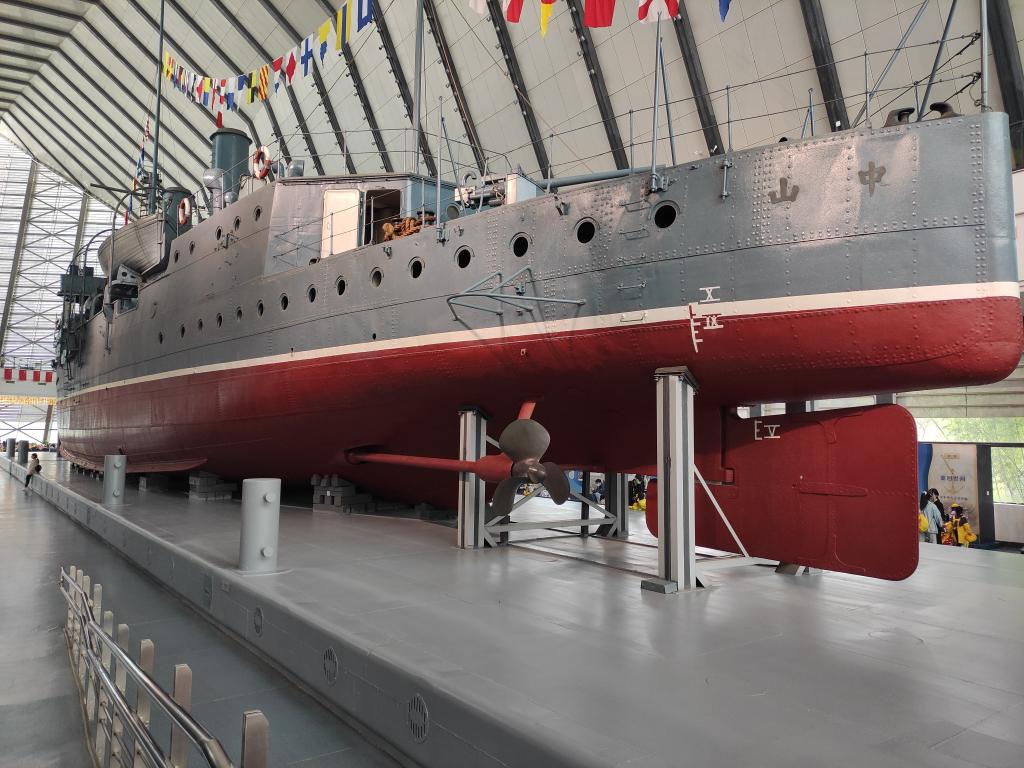 中山舰博物馆讲解人员为我们仔细讲解了中山舰的历史与其相关的伟人事迹。1938年武汉会战中,中山舰在长江金口水域壮烈牺牲。从1986年,湖北省文化厅开始提请打捞中山舰,让这一历史名舰重回世间。到2001年,在湖北省文化厅、湖北船厂、重庆长江救助打捞公司、人民海军等多部门的协调配合下,克服重重困难,终于完成了中山舰的打捞修复工作。经历二十五载春秋岁月,为我国的水下考古和出水文物修复工作积累了丰富的经验。2011年,中山舰博物馆主体建筑对外开放。新建成的博物馆集文物陈列、保护、研究和爱国主义教育等多功能于一身,在守护历史记忆的同时,也传承着坚忍不拔、英勇无畏的民族精神。站在二楼平台上观望在大厅平静沉睡的中山舰,舰身上累累的伤痕仿佛仍带着炮火硝烟。