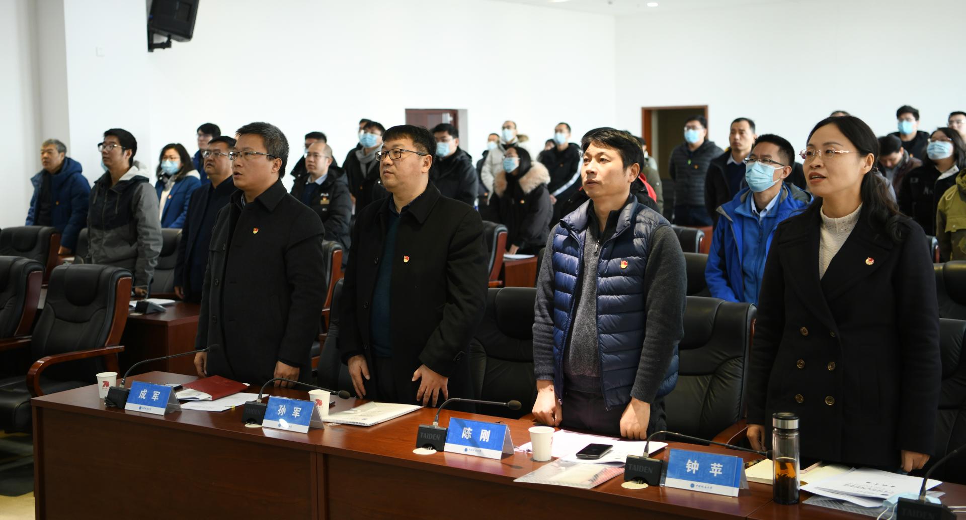 大会在庄严的国歌声中开幕,全体与会同志佩戴党徽,整齐肃立,齐唱国歌。