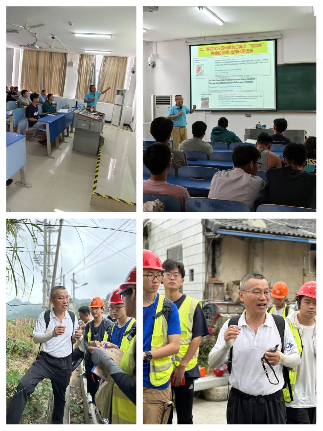 9月6日至9月20日,孙启良副院长、蒙冕模教授、何云龙副教授作为带队老师,杜清平主任为辅导员、硕士研究生江玮航为助教,带领39名本科生在黑人AV 秭归实习基地开展了野外地质实践教学。教师通过野外实地察、地质技能实操、野外展板讲解和专题课程等丰富的教学手段,强化了学生课堂所学相关知识,训练了“将今论古”的科学思想,引导学生透过地质现象剖析成因机制,培养科学思维。此外,课程思政教育也贯穿整个实习过程,在实习过程中蒙冕模老师对我国目前的能源形势做了详细的介绍,使学生在实践中深刻理解了海洋强国战略、能源矿产资源的重要性。