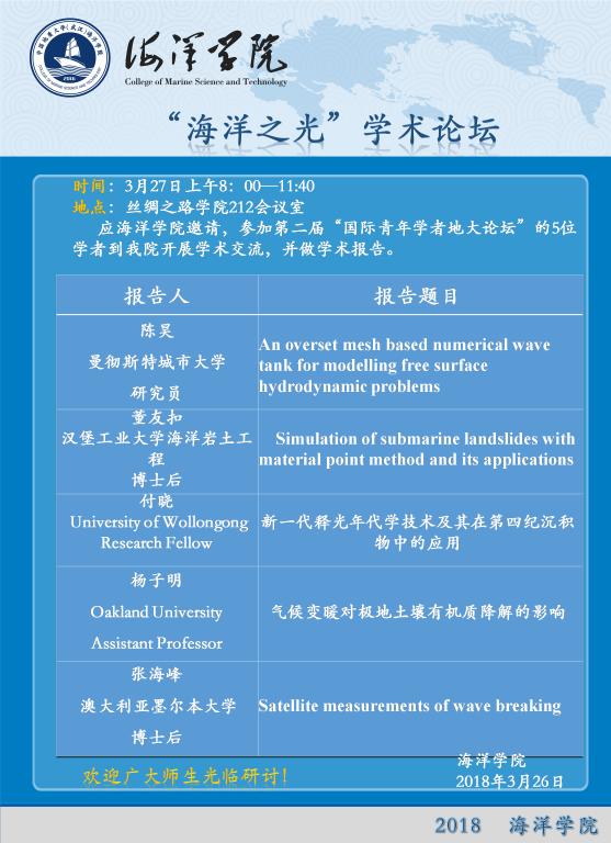 “海洋之光”学术论坛(第13期)—— 第二届“国际青年学者地大论坛”学者