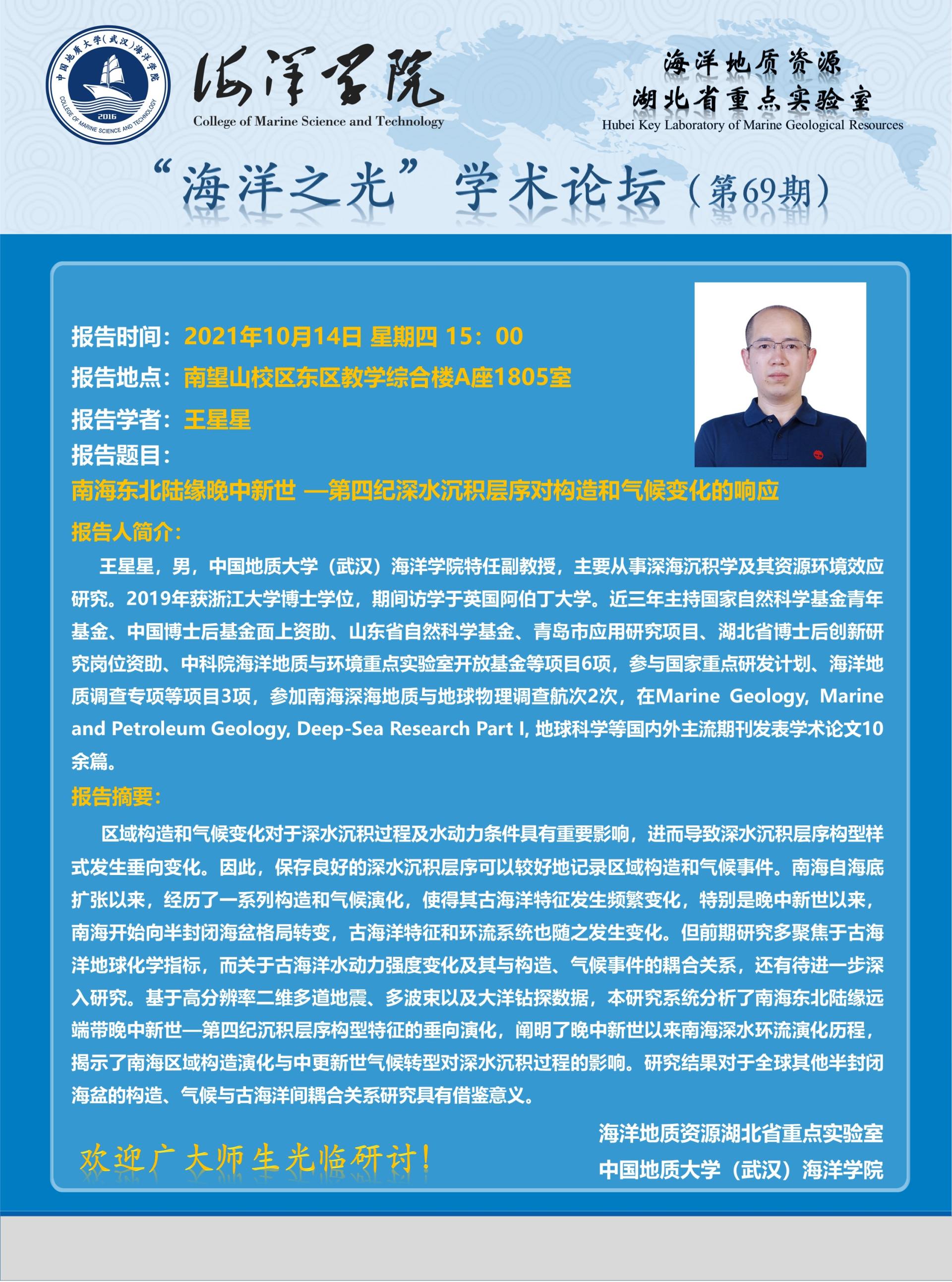 “海洋之光”学术论坛(第69期)——王星星
