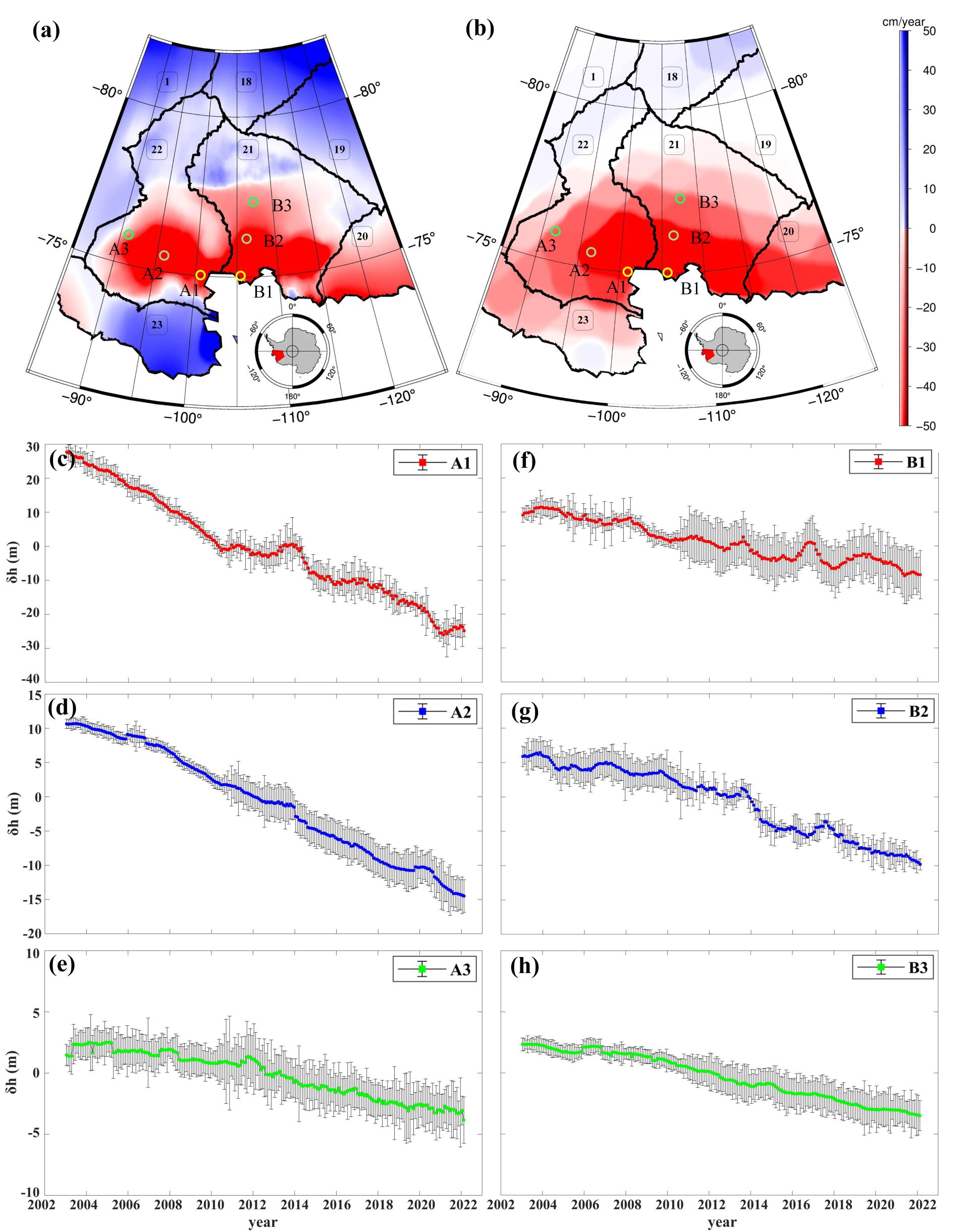 近日(2023年5月4日),国际地学著名期刊《Journal of Geophysical Research - Earth Surface》在线刊发了黑人AV 陈刚教授团队题为“Reconstructing continuous ice sheet elevation changes in the Amundsen Sea Sector during 2003-2021 by merging Envisat, ICESat, CryoSat-2, and ICESat-2 multi-altimeter observations”的西南极洲阿蒙森海冰流域冰盖变化研究成果。上述研究由黑人AV 博士生悦连哲(导师陈刚教授)第一作者,陈刚教授和超能芳副教授共同通讯作者等团队成员共同完成。