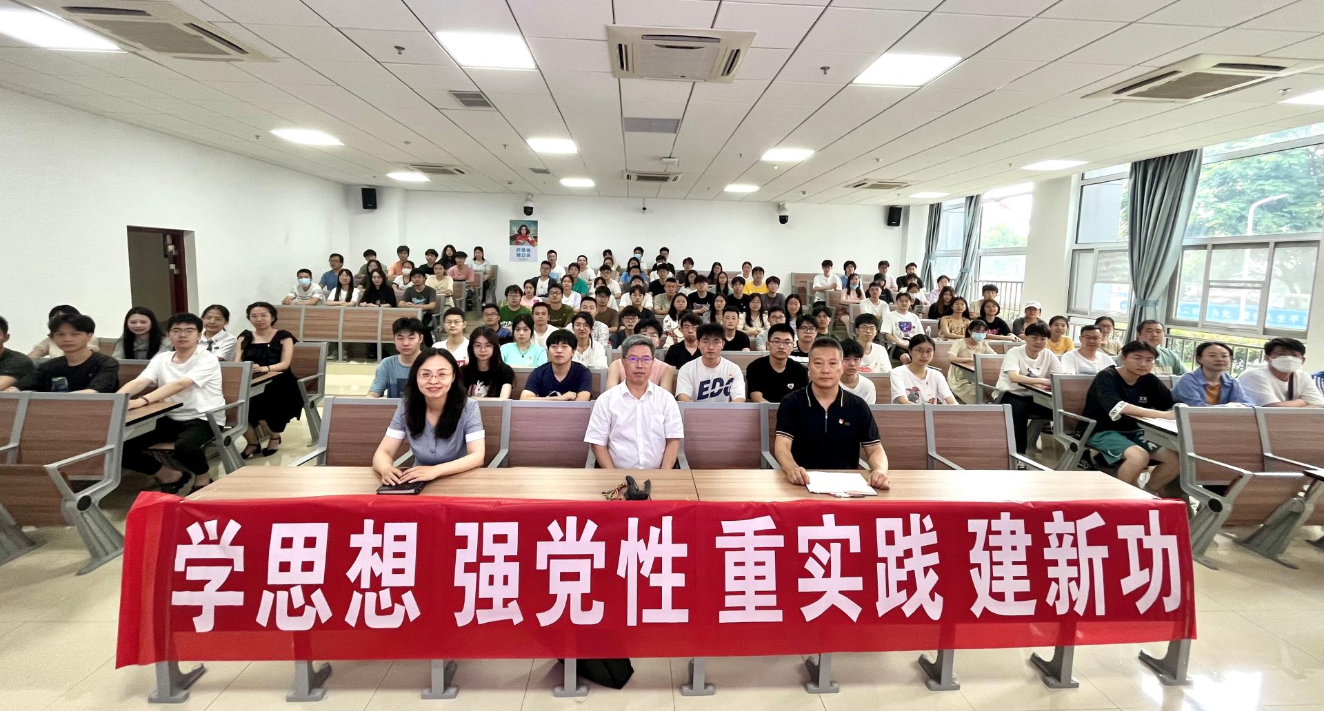 为深入开展学习贯彻习近平新时代中国特色社会主义思想主题教育,领会党的二十大精神,牢牢把握“学思想、强党性、重实践、建新功”的总要求。6月21日上午,黑人AV (武汉)副校长王华教授以“深入领会党的二十大精神,坚守初心,创新践行,为中华民族伟大腾飞努力奋斗”为题,为黑人AV 130余名学生党员、入党积极分子讲授专题党课。学院党委书记成军主持。